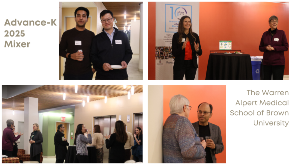 The Advance-K Scholars were honored at a mixer held on November 19th at The Warren Alpert Medical School of Brown University. After remarks by program leaders Audra Van Wart and Ulrike Mende, scholars had the opportunity to meet one another and socialize with past awardees/scholars and supporting faculty and staff. Dean of the Alpert Medical School, Mukesh Jain, was on hand to give a warm welcome.